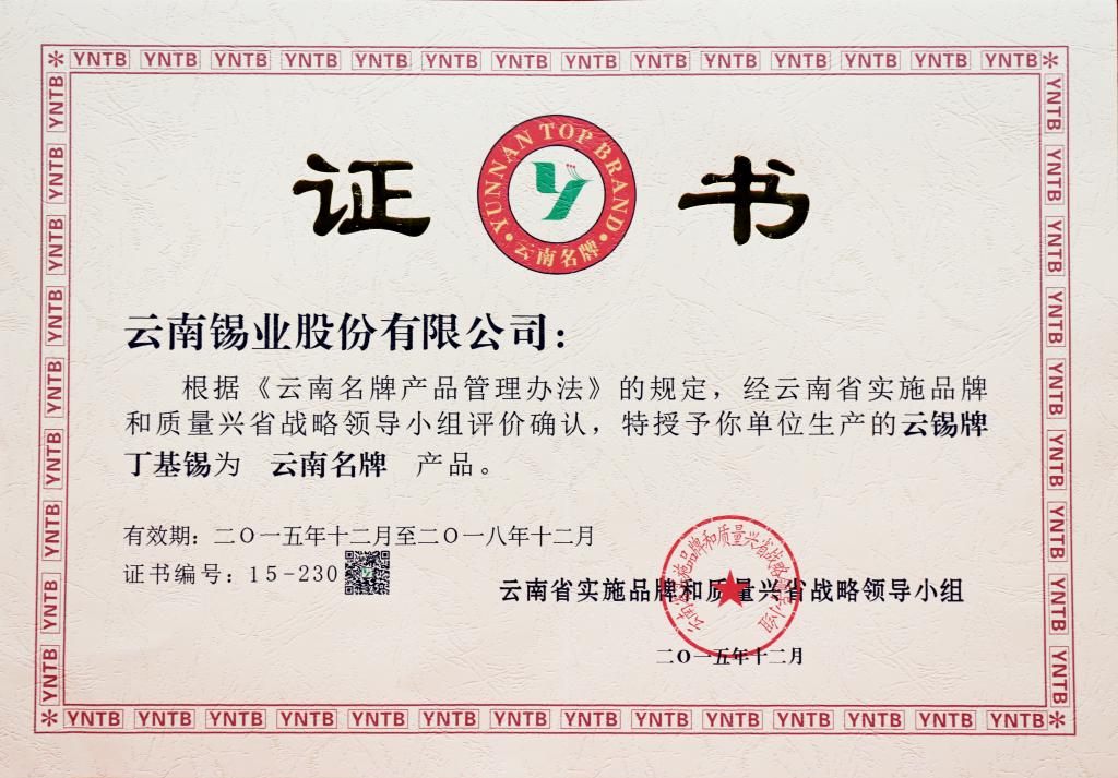 云錫牌丁基錫為云南名牌產(chǎn)品