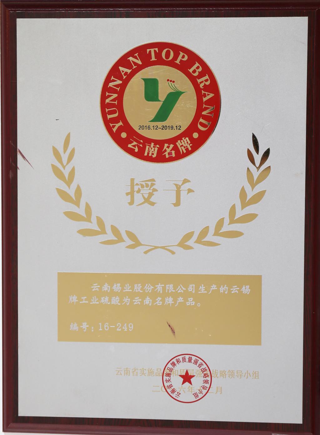 云錫牌工業(yè)硫酸為云南名牌產(chǎn)品