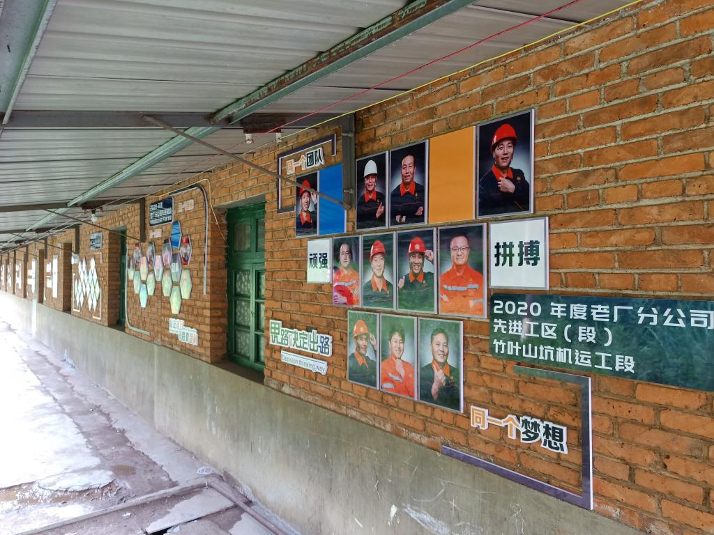 有一群人,他們向往陽光,卻深入百丈井下,不辭辛苦;他們生而平凡,卻從不低頭認輸,發(fā)光發(fā)熱;他們是迎難而上的錫山人,是不屈不撓的竹坑人。二十六載歲月積淀,任爾東西南北風,咬定錫山不放松,是竹葉山坑的根脈和記憶。這片扎根在廢石碴上的堅韌土地,發(fā)生了許許多多熱淚盈眶的故事,涌現(xiàn)出了一批批頑強拼搏的先進人物。技能大師楊勇、云嶺技師張躍源、勞動模范李批優(yōu)等就是其中的典型代表。為集中展示先進事跡,汲取榜樣力量,竹葉山坑依托老職工宿舍17幢原有墻面,用一幅幅圖片和一句句格言,圖文并茂展現(xiàn)出竹坑先進模范、先進工段和先進班組的風采,把職工上下班的必經(jīng)之路打造成“先進集體和先進個人之路”,讓職工潛移默化向先進致敬、向榜樣看齊。