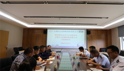 5月27日,文山州稅務局黨委書記、局長馬學偉一行五人到文山鋅銦公司調研指導工作,文山鋅銦公司總經理朱北平、常務副總經理張成俊及相關部室負責人參加調研座談會。