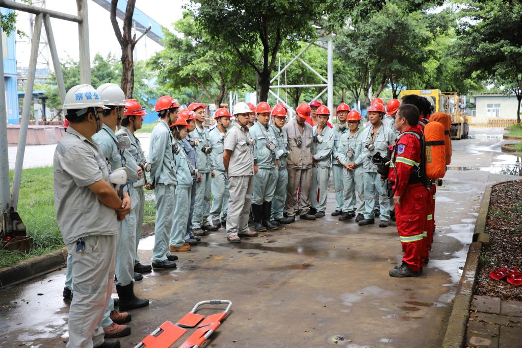 為提高應急救援隊伍的快速反應、協同作戰能力,進一步強化有限空間作業安全管理和安全防范意識。8月29日,云錫應急救援隊銅冶煉小分隊在電解車間循環工序開展有限空間作業事故應急救援演練,演練設置事故報告、預案啟動、現場救援、善后處置、演練點評5個演練項目。