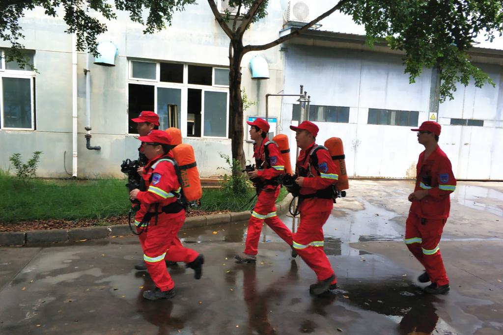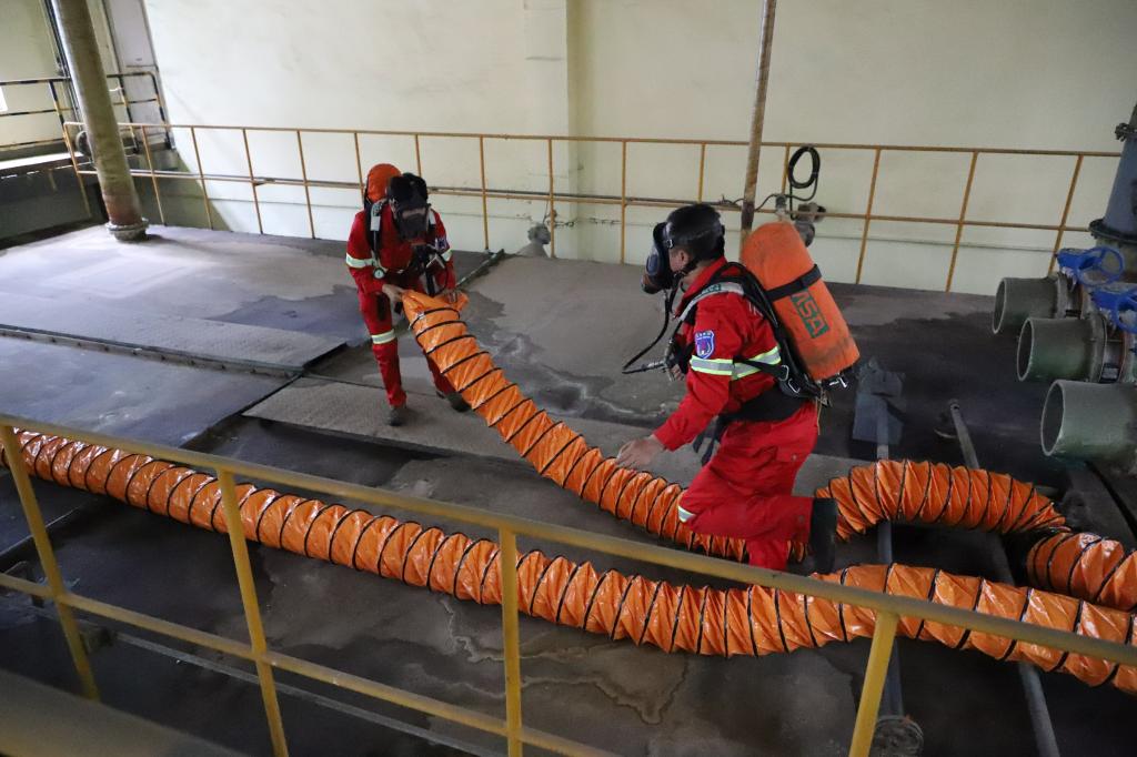 演練中,應急救援隊嚴格按照要求,明確作業分工,兩人一組,從搬運搶救傷員、接電通風、設備檢查、氣體檢測等方面開展救援工作。