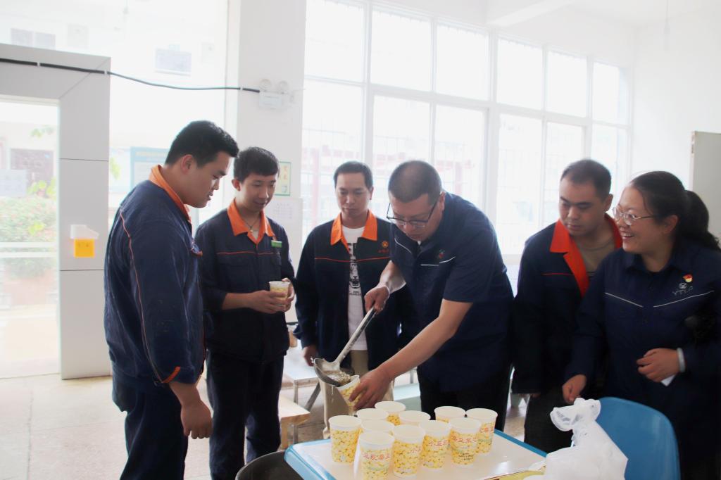 “輔助抱團”活力四射。“每天看一下自己班的成績,哪方面存在不足,在接下來的工作中就要多想辦法,決不能給班組丟分”坑口食堂班組的負責人說道。像這樣的小班組在輔助工序有多個,“每天在小班組之間進行競賽,以月為統計單位,計算每天的服務質量。我們會對競賽結果通過微信群進行季度通報,不斷增強組員干事創業的緊迫感和責任感。”“兵馬未動,糧草先行”。為確保競賽目標順利完成,坑口大力開展防暑降溫宣傳教育,切實提高工友防暑安全意識;確保用電設備設施安全,多措并舉改善工友作業環境;適時調整夏季高溫作業勞動和作息時間,確保工友人身安全。部門工會為職工送去綠豆湯、方便面、壓縮干糧等慰問品,并為參賽工區(隊組)配置部分微波爐、電磁爐、熱水壺及部分急救藥品,積極做好后勤保障,號召每一名管理人員、工友鼓足干勁、迎難而上,以嶄新姿態積極投身勞動競賽中,用激情和汗水創造不平凡的勞動業績。