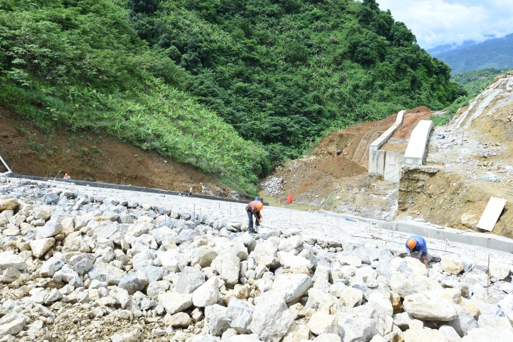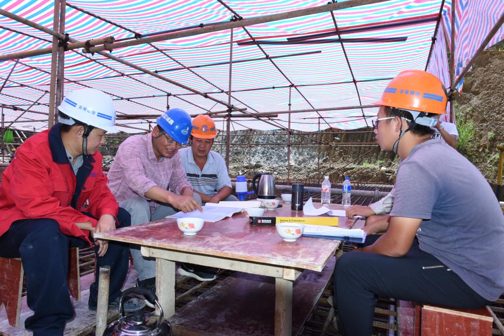 他們掐著時間和雨天賽跑,加快“活要干在下雨前”的步伐。在建設庫內排洪隧洞時,由于電力不足影響施工,項目部的兄弟們自發去幫助架接電纜,在傾盆爆雨中一人打傘,一人挖坑,時不時還摔上一跤,等到電纜接好時大家都成了泥人。