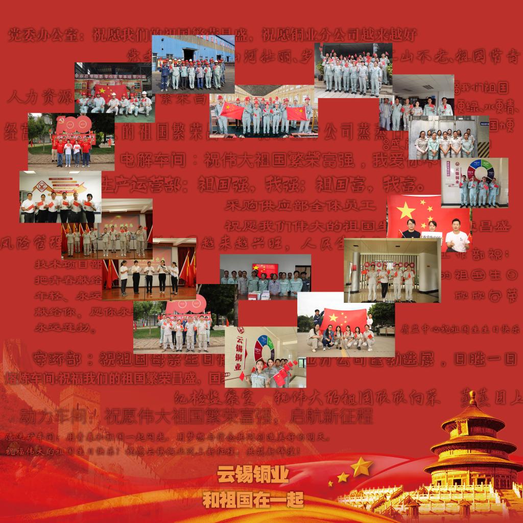 神州大地繁花似錦,祖國(guó)長(zhǎng)空曲樂如潮,我們不忘初心,砥礪前行,真誠(chéng)祝愿祖國(guó)繁榮昌盛,祝愿云錫蒸蒸日上。
