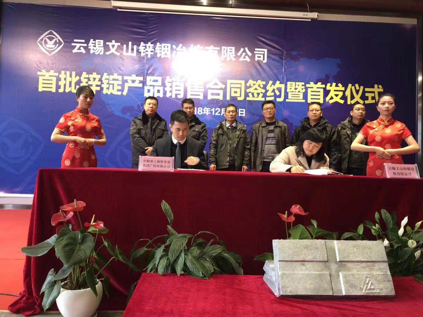 各簽約方在儀式上分別做了表態發言,并與文山鋅銦冶煉公司總經理朱北平簽訂首批鋅錠銷售合同。隨后,參加簽約儀式的嘉賓和領導對首批產品的首發進行了剪彩。