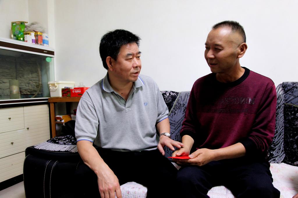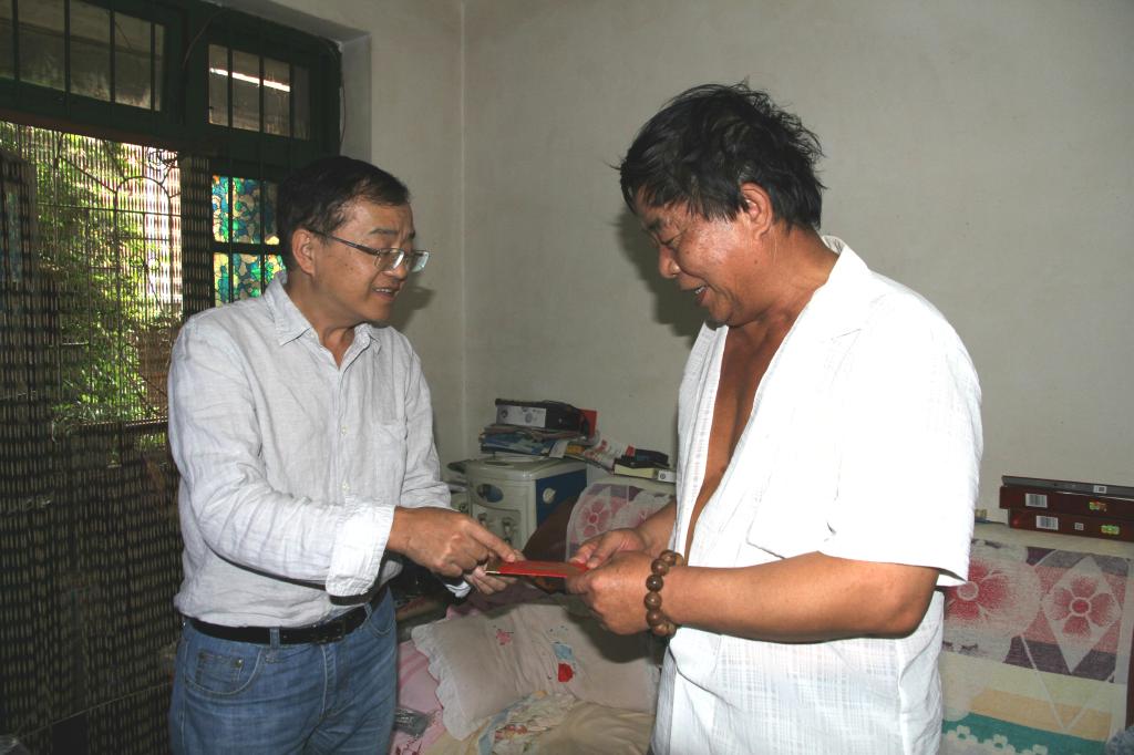 錫業股份副總經理童祥走訪慰問老廠分公司困難職工周金偉、董福信、羅國偉。(李拉發/攝)