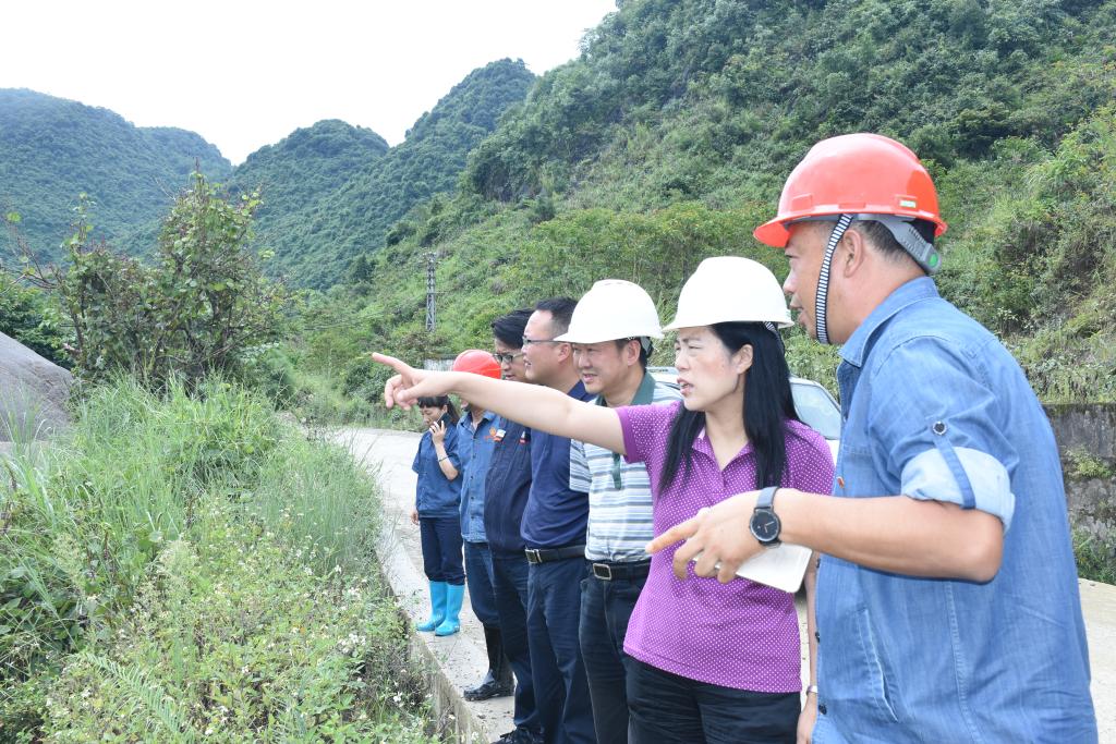 在象沖尾礦庫項目建設現場指揮部,楊奕敏聽取了庫區項目施工、建設進度匯報,詳細了解庫區初期壩、攔水壩、尾礦輸送管線、筑壩石料供應等在建工程情況,并到各子項目工地、石料加工、采取現場進行實地查勘。