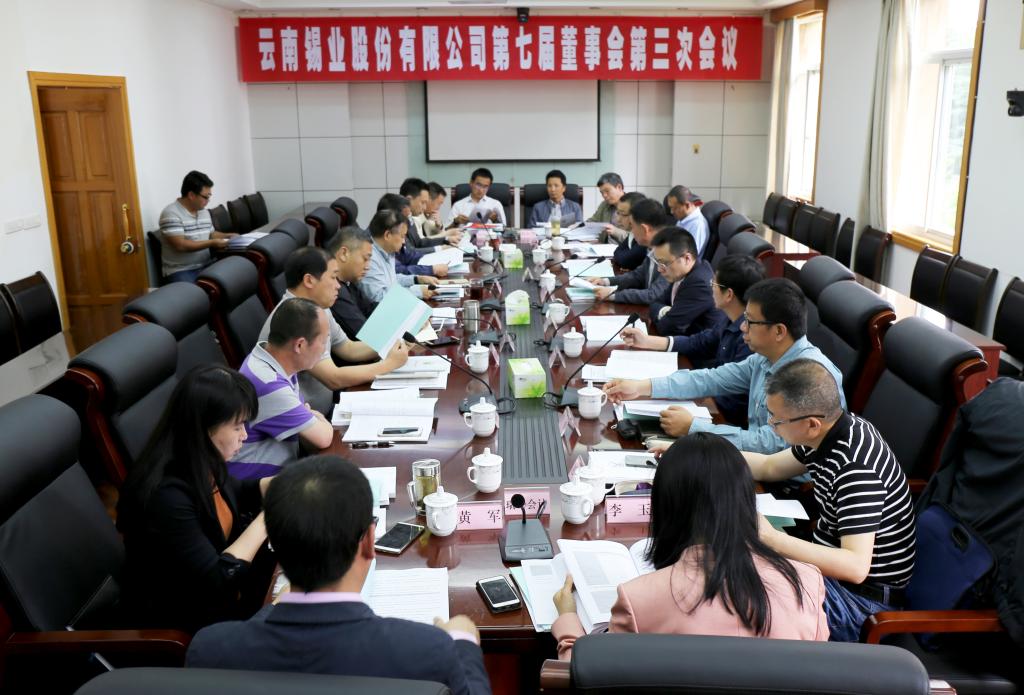 云南錫業(yè)股份有限公司第七屆董事會(huì)第三次會(huì)議于2018年4月25日在公司四樓一會(huì)議室以現(xiàn)場(chǎng)記名投票表決方式召開。公司董事會(huì)由10名董事組成,出席會(huì)議董事7名,由于工作原因無法參加本次董事會(huì)的3名董事分別委托董事會(huì)成員參加并代為行使表決權(quán)。公司董事長(zhǎng)湯發(fā)主持會(huì)議。