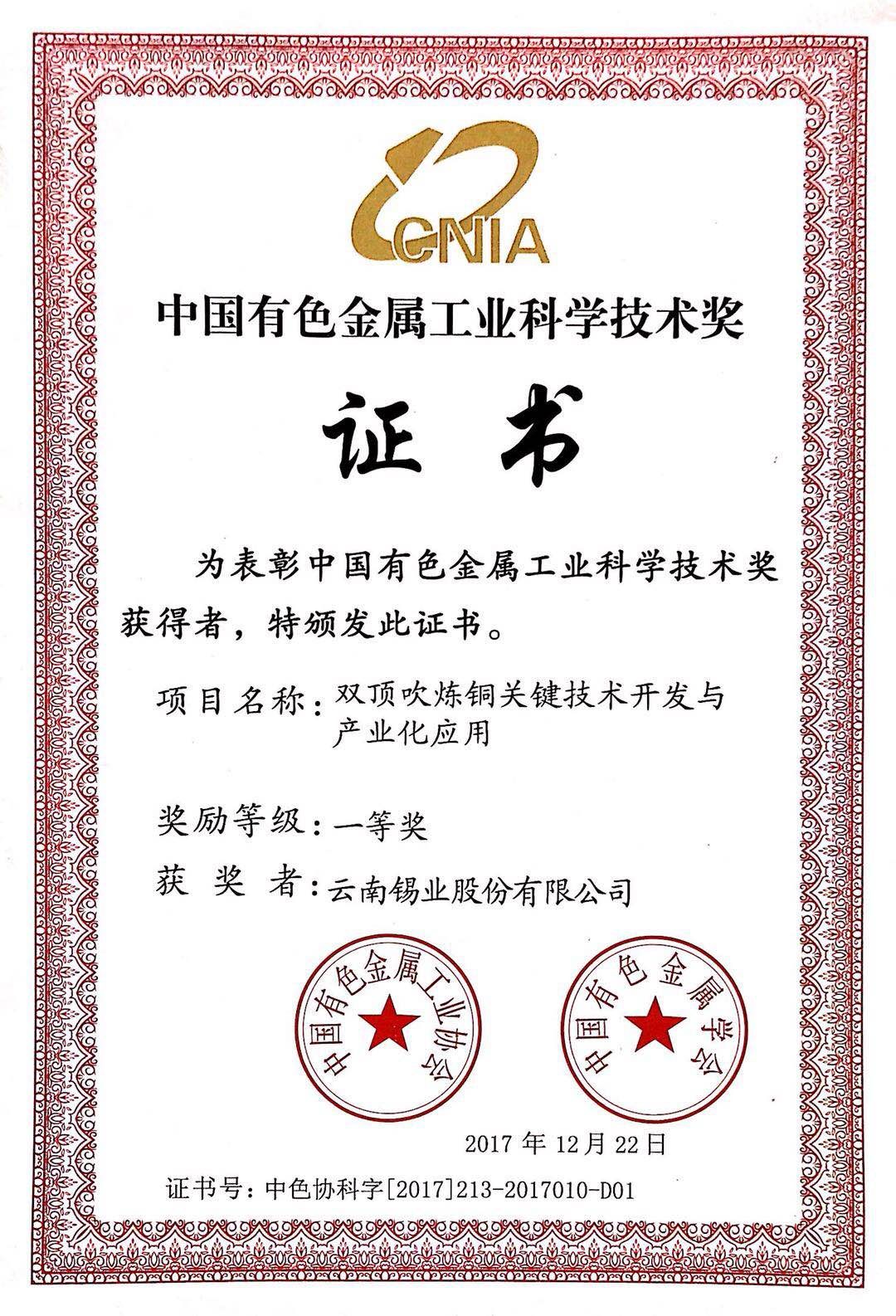 近日,經(jīng)中國有色金屬工業(yè)協(xié)會、中國有色金屬學(xué)會評審及公示,云錫股份公司銅業(yè)分公司“雙頂吹煉銅關(guān)鍵技術(shù)開發(fā)與產(chǎn)業(yè)化應(yīng)用”榮獲中國有色金屬工業(yè)科學(xué)技術(shù)一等獎。