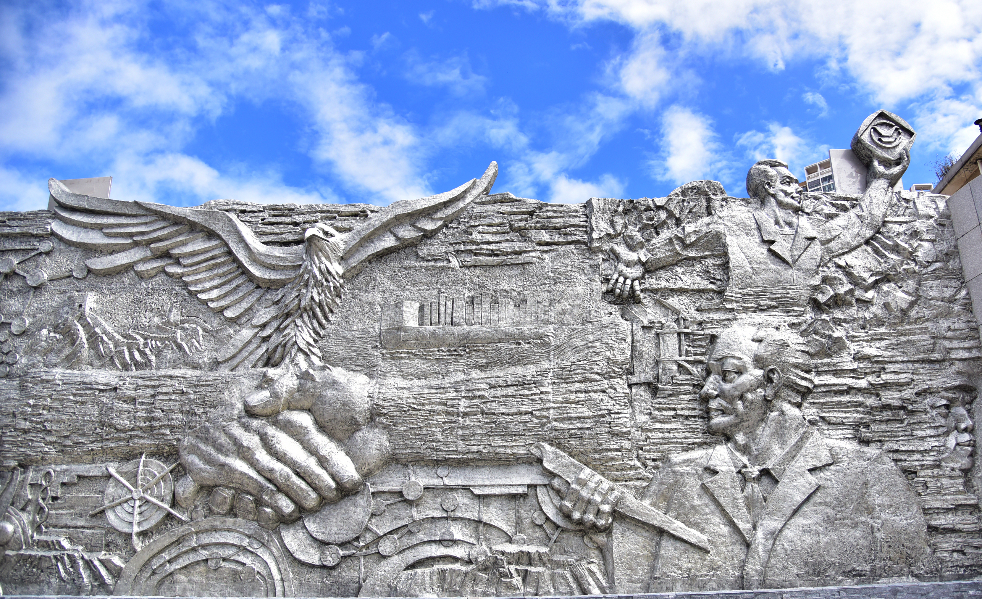 在設(shè)計(jì)方、施工方和云錫參建單位與制作人員的共同努力下,2021年10月,總長(zhǎng)80米、平均高度5.4米的大型錫業(yè)文化主題群雕在個(gè)舊金湖東路云錫辦公大樓門口落成。