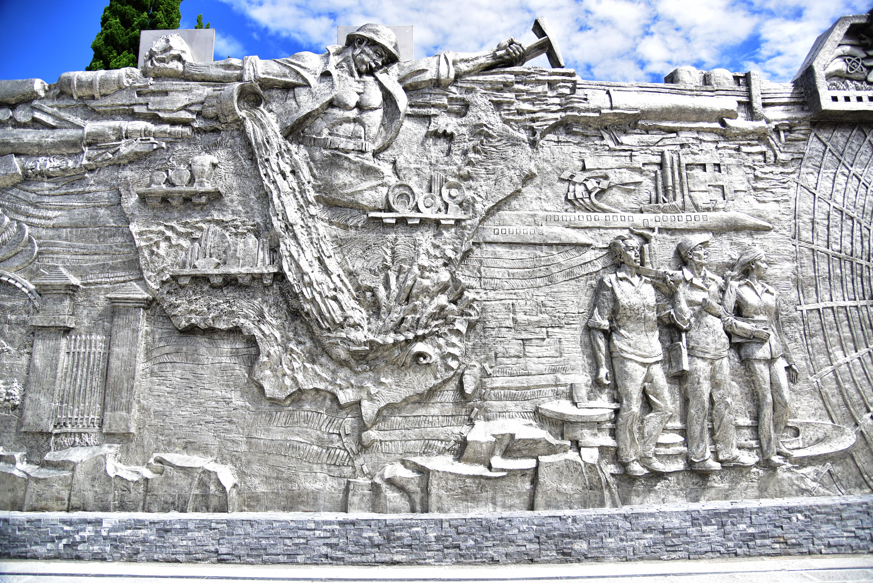 錫礦開采歷史的見證者、舊時(shí)人背馬馱的運(yùn)礦方式、不同字體的“錫”字、捧著個(gè)舊金湖的雙手、代表哈尼族的吉祥鳥、古老的個(gè)舊選廠鐘樓、滇越鐵路、 “云錫三杰”、以熊秉信和丁文江為代表的地質(zhì)專家,29號(hào)小火車、8號(hào)礦洞……在以英文字母“Y”為中軸的左側(cè)主題浮雕墻上,每一個(gè)元素就是一個(gè)故事,它們串連在一起仿佛在訴說著“錫映千秋”的歷史輝煌。